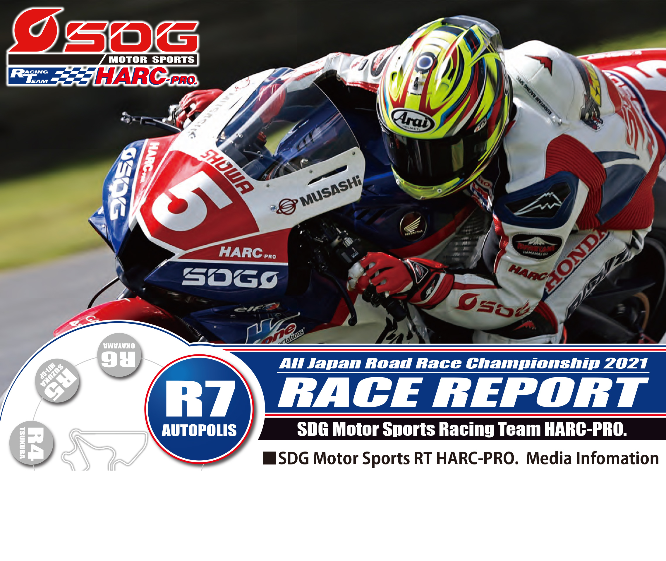 PRESS RELEASEプレスリリースアーカイブ - 2021年 新着のプレスリリースです。 ARCHIVE 2024/05/24 - 16:00 ISOの認証を更新しました 2021/09/27 - 11:00 SDG Motor Sports RT HARC-PRO. 第7戦 スーパーバイクレース in 九州 2021/09/13 - 11:00 SDG Motor Sports RT HARC-PRO. 第6戦 スーパーバイクレース in 岡山 2021/07/27 - 17:00 SDG Motor Sports RT HARC-PRO. 第5戦 スーパーバイクレース in 鈴鹿 2021/07/19 - 12:00 2021年休業日のお知らせ(7〜12月) 2021/06/23 - 18:00 SDG 社員榎戸が今シーズン初優勝!全日本ロードレース選手権Rd.4レースレポート 2021/06/07 - 18:00 SDG Motor Sports RT HARC-PRO. 第3戦スーパーバイクレース in SUGO 2021/05/27 - 12:00 夏季休業のお知らせ 2021/05/21 - 13:00 東日本テクニカルセンター(仮称) 建設に伴う東京支店移転のお知らせ 2021/04/12 - 18:00 SDG Motor Sports RT HARC-PRO. 第1戦スーパーバイクレース in もてぎ 2021/04/12 - 15:00 GWに伴う営業体制と製品出荷スケジュールのお知らせ 2021/04/01 - 12:00 グループ会社 社名変更のお知らせ 全件表示 2025年 2024年 2023年 2022年 2021年 2020年
